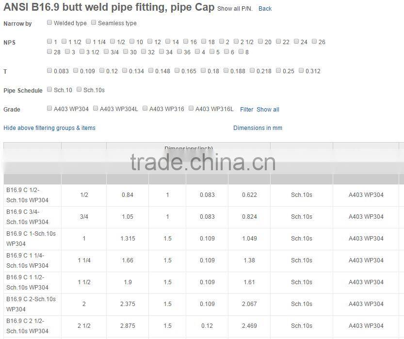 - B16.9 C B16.9 pipe cap ANSI B16.9 butt weld pipe fitting, pipe Cap
