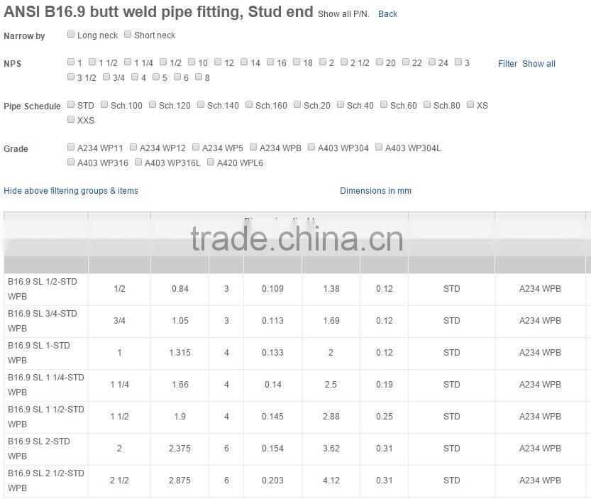 - B16.9 S B16.9 stud end ANSI B16.9 butt weld pipe fitting, Stud end
