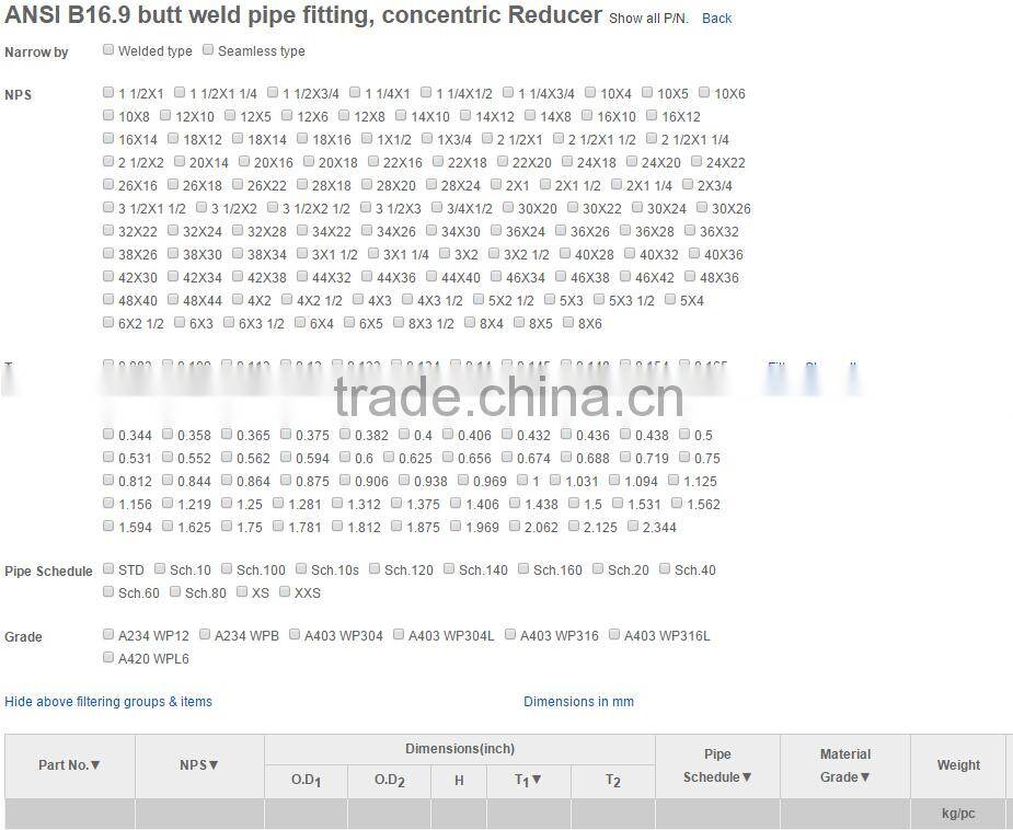 - B16.9 CR B16.9 concentric reducer ANSI B16.9 butt weld pipe fitting, concentric Reducer