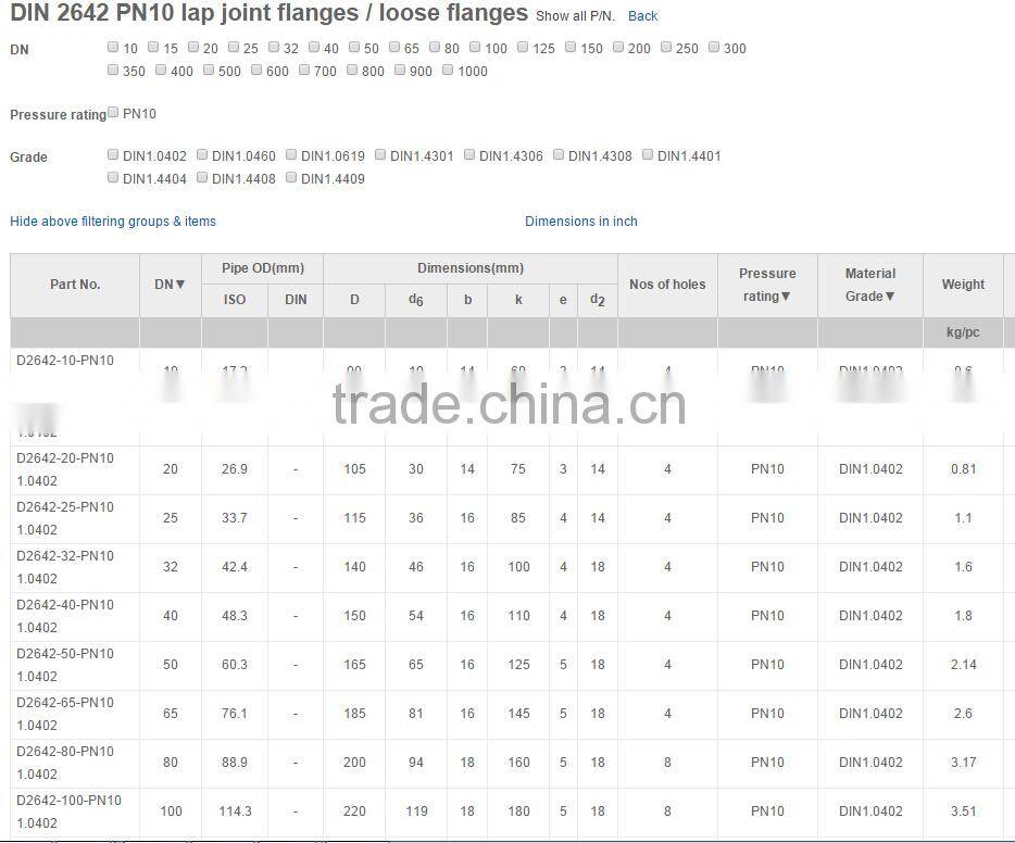 - D2642 DIN 2642 PN10 LJ DIN 2642 PN10 lap joint flanges / loose flanges