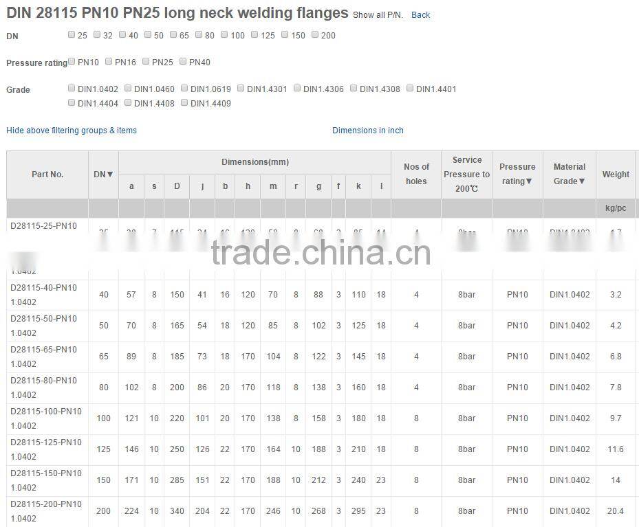 - D28115 DIN 28115 PN10 PN25 long WN DIN 28115 PN10 PN25 long neck welding flanges