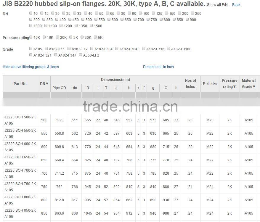 - J2220 SOH JIS B2220 SOH JIS B2220 hubbed slip-on flanges. 20K, 30K, type A, B, C available.