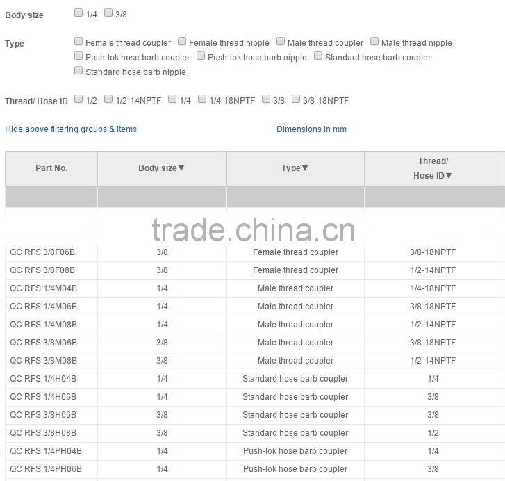Pneumatic quick release coupling, RF series push-to-connect, quick release connector , RF series push-to-connect (one-hand), coupler brass body with steel sleeve, steel nipples.