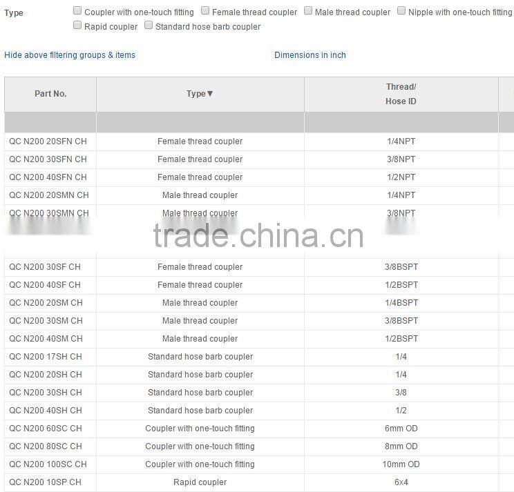 Pneumatic quick release couplings - Nitto Hi Cupla 200 couplings. Nitto Hi Cupla 200 series push-to-connect quick couplings, only steel body available.