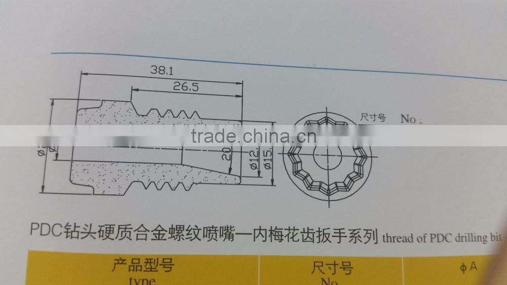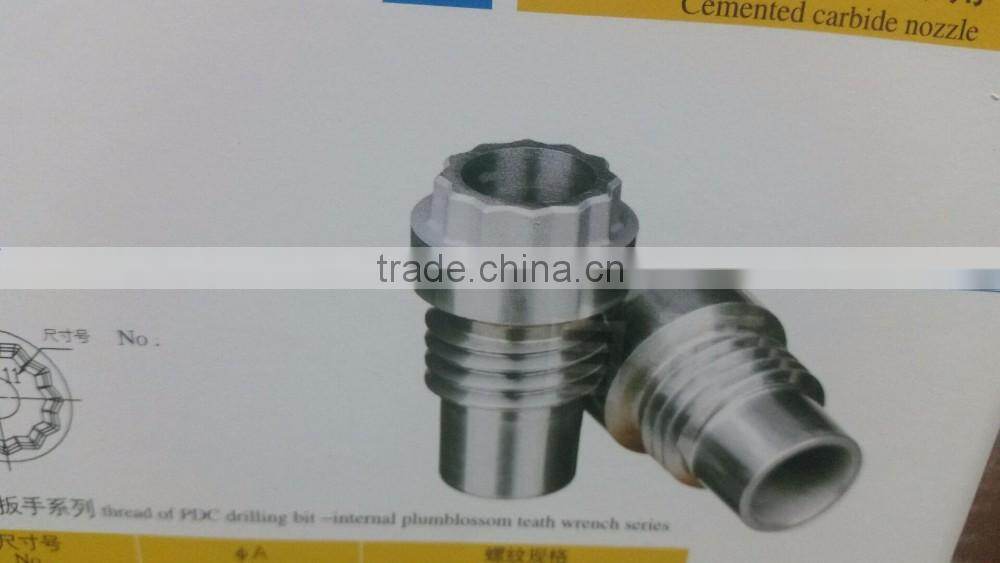 The cemented carbide nozzles will be used mainly to PDC drill bits and cone roller bits for flushing, cooling and lubricating drill bit tips and cleaning stone chips in the well bottom with drilling liquid in the working conditions of high pressure ,vibration,sand and slurry impacting during oil and natural gas prospecting.