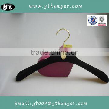 HA6986 Black Barande Hanger With Gold Logo Velvet Flocking Coat Hanger Supplier's Choice