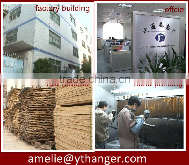 we are professional hanger manufacturer,we mainly engage in wooden, plastic,velvet,hand feeling paint hangers , our products are in various style and perfect moulding and sold at home and broad .on the other hand,we enjoy high reputation from a wide range of customers. as we have been in this field for many yeas,yeas of experience and improvement in technology ,now our products are leading the market, if you have interest in our products,pls feel free to contact me(e-mail and telephone are both ok) or browse our website,