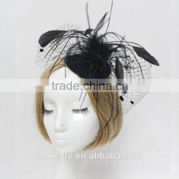 High Quality Handmade Black Veil Fascinator hat With Feather
