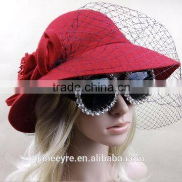 Wholesale Red 100% Wool Felt Hat With Veiling For Ladies