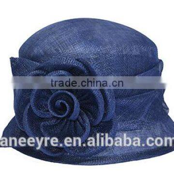 Navy Plain Sinamay Church Hat For Ladies