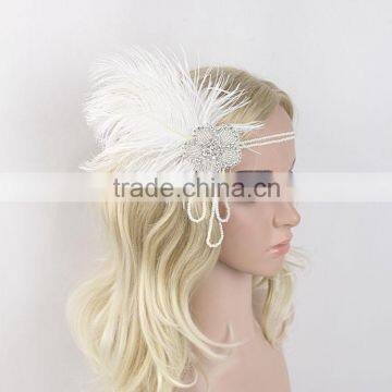New Fashion Ladies Wedding Party Design Feather Pearl Headband Bridal Headpiece