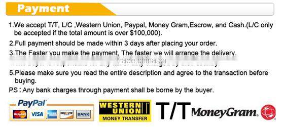 | Terms of payment: | T/T,Western union or Paypal(4% paypal fee) |