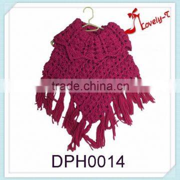 Wholesale Big Collar Hand Knitting Baby Girls Winter Warm Fashion Acrylic Poncho Shawl With Tassels