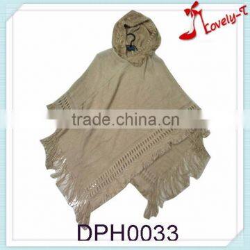 2015winter Women Fur Camel Pullover Poncho Sweater Pattern With Hat