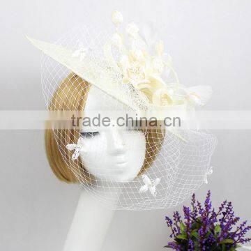 Fashionalbe Design Lace Cover Sinamay With Veil Fascinator Church Hat