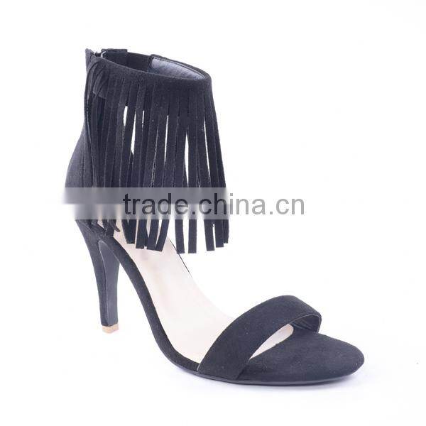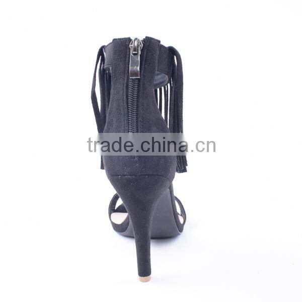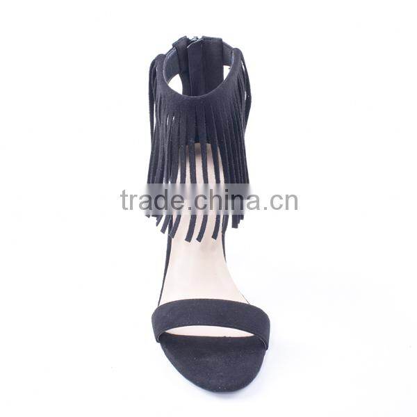 Good quality cheap price high heel woman suede tassel sandals using back zipper