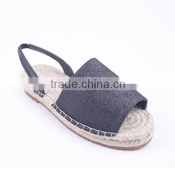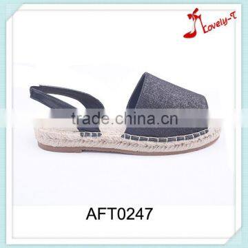 2016 winter autumn flat peep toe glitter espadrilles sandals with slingback