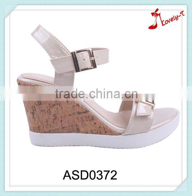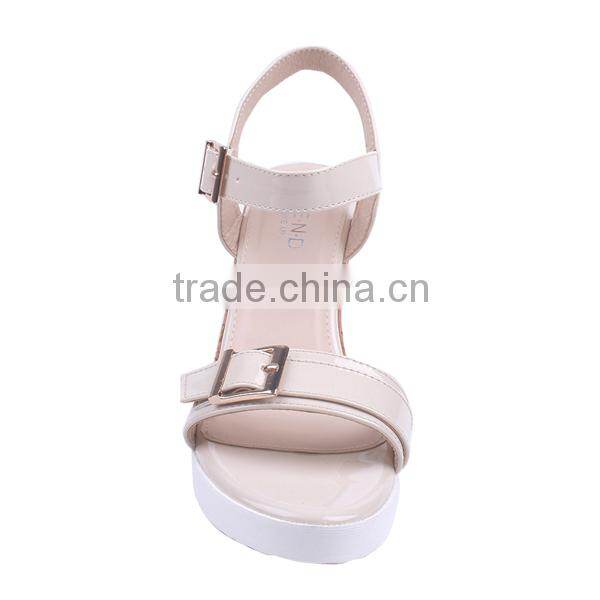 2016 Hot Sale Summer Cream Color Beautiful New Design Girl Sandals With Double Buckles