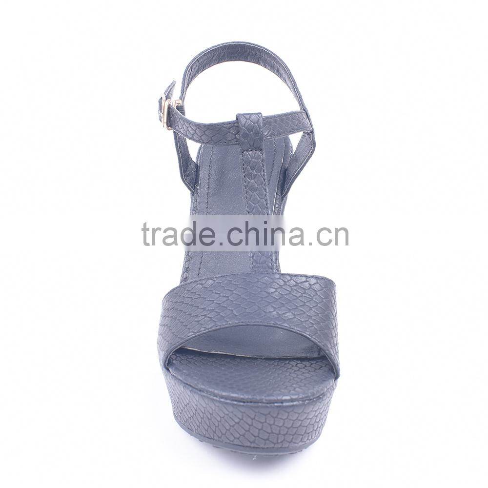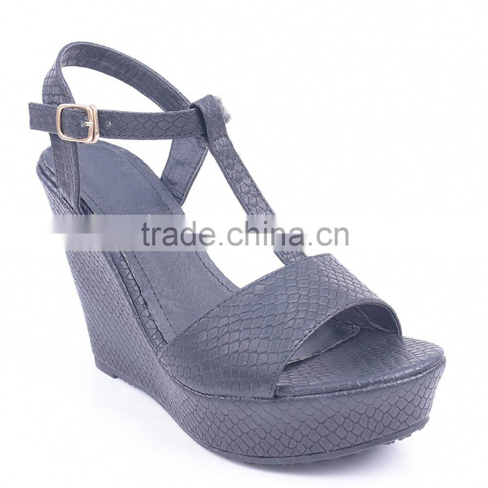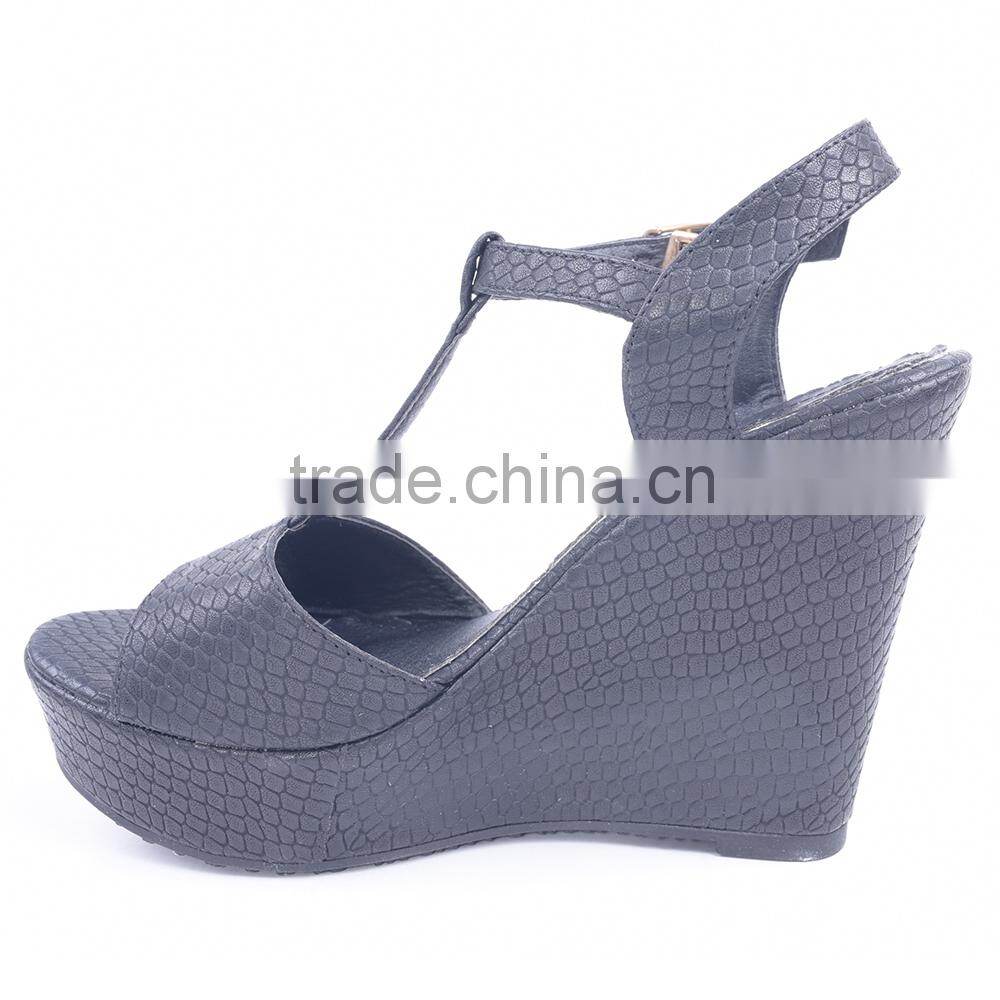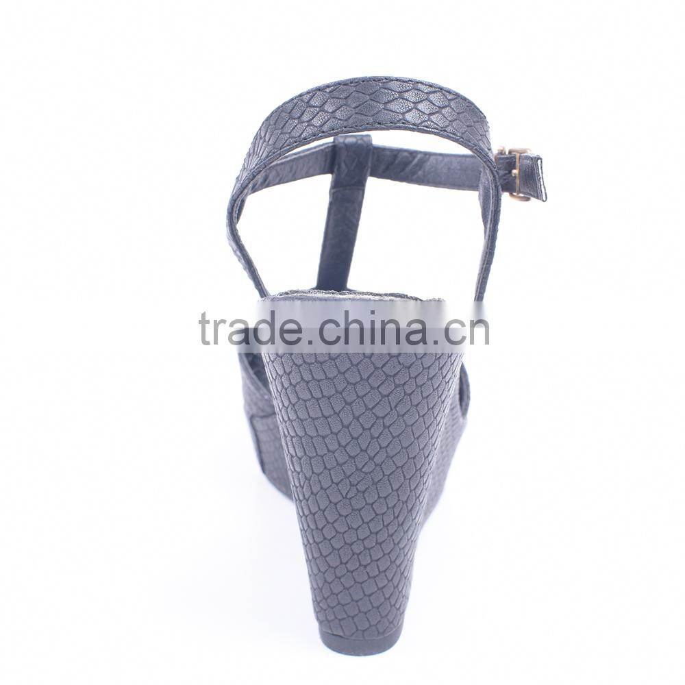 Latest design china cheap women shoes summer snake print wedge buckle sandals