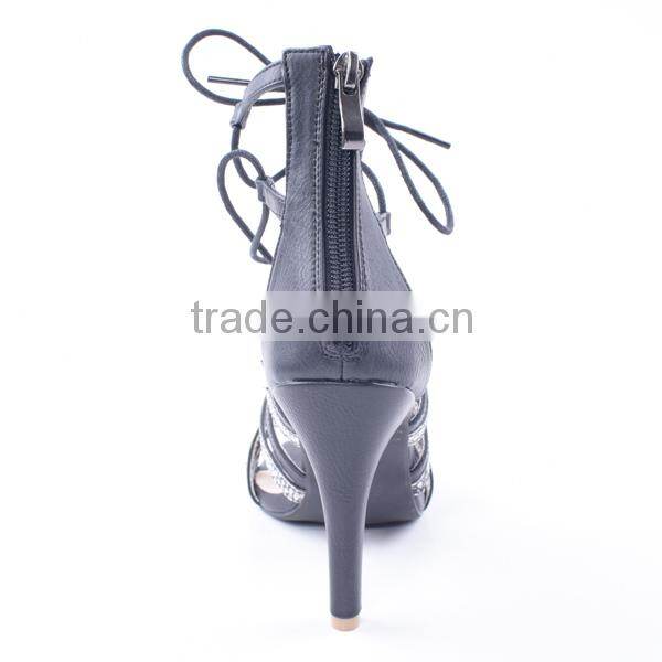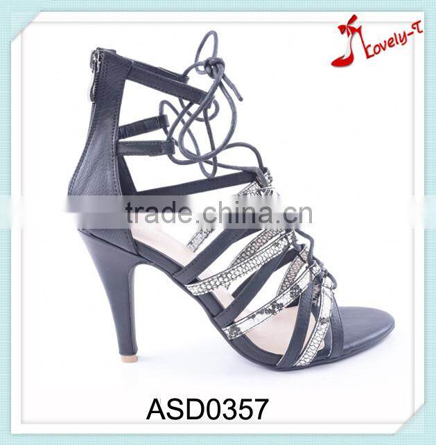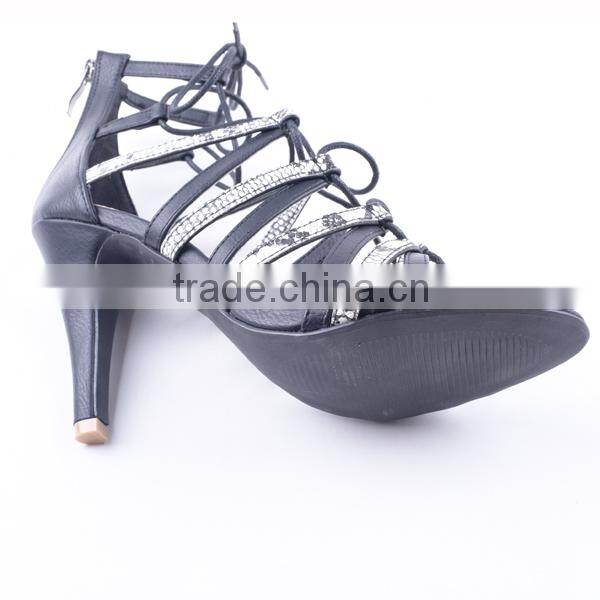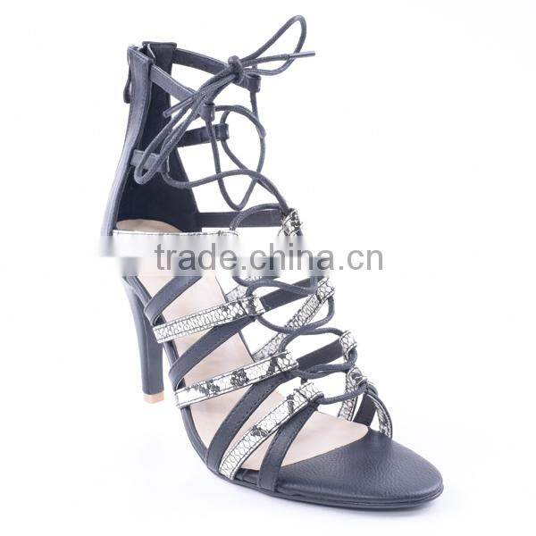| Name | Mixed snakeskin upper high heel lady lace up gladiator sandals with back zipper |
