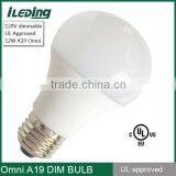800lm 12Watts Omni A19 LED Household Dimmable Light Bulb UL