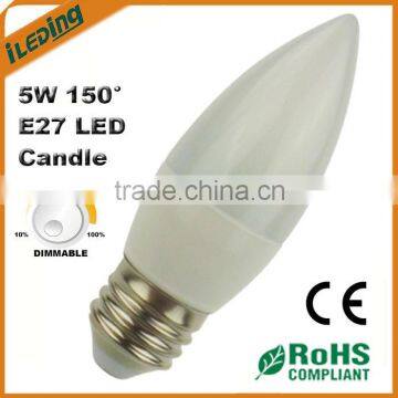 E27 LED Candle Bulb Dimmable1). 220V 5W 300lm 150 degree