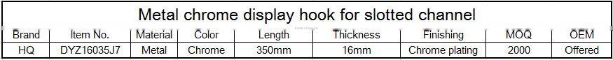 Metal chrome slotted channel display hook