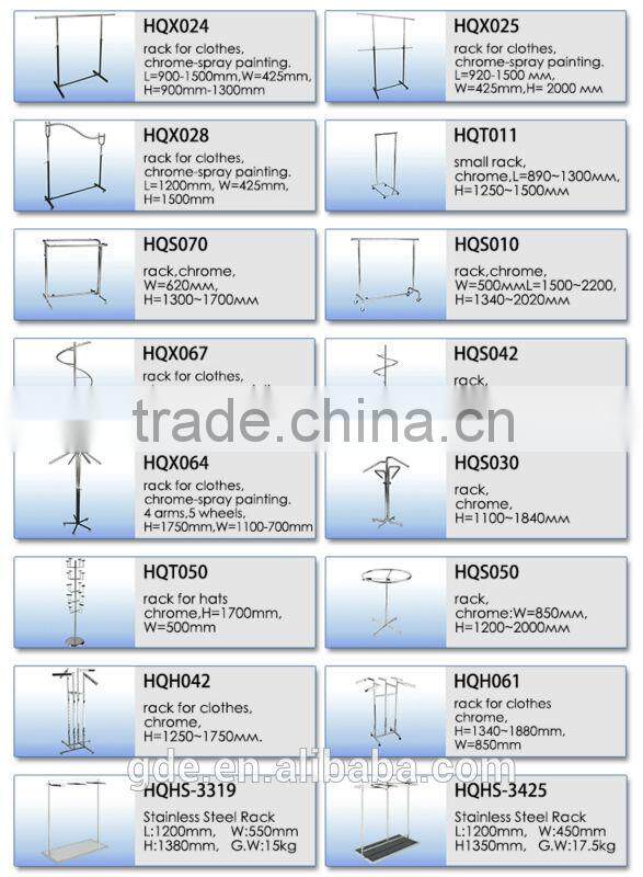 Home > Products > Garment Rack > Removable Heavy Duty Metal Chrome Salesman Rack for Clothes Rack