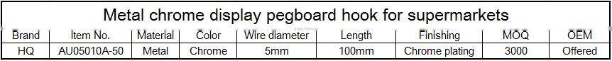 Supermarket Retail Display Hook Chrome Pegboard Display Hook
