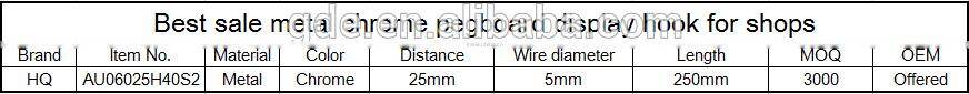 Metal Punched Board Display Hook Retail Display Hook for Pegboard