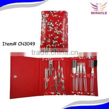 3.manicure set cosmetic tool in flower pu pouch
