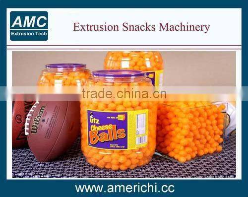Aperitivos extrusora adopta maíz, arroz , trigo , avena , cebada , etc como ingredientes para hacer aperitivos bocanadas . A traves de la friccion del tornillo y el barril , los granos son cocinados en la extrusora . Conformado esta en la cara de la boquilla de corte . La forma del producto se determina por una combinación de la abertura de la matriz , incluyendo bola , tubo , barra , anillo , bucle de fruta , estrella, rueda y la flor etc.