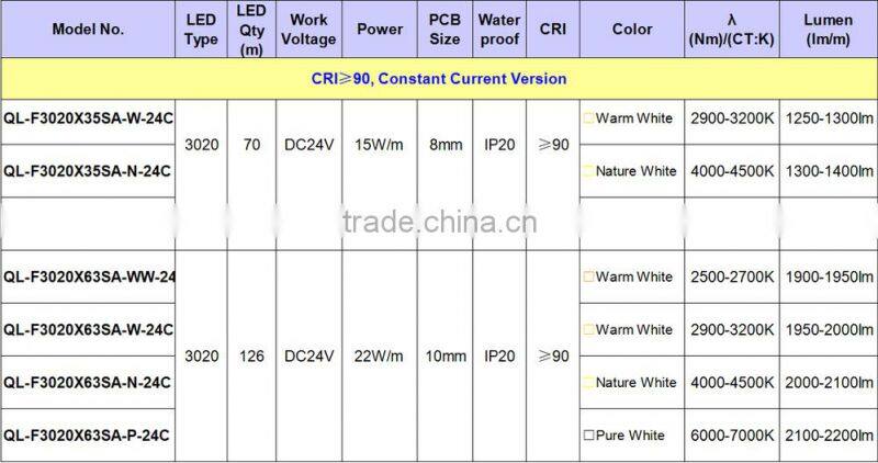 | UL, CUL Listed CRI≥90 3020 LED Strips | ||||||||||