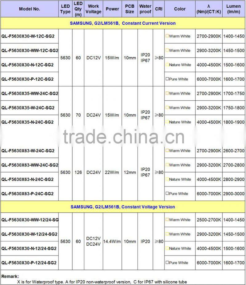 | Specifications of SMD5630 Strips with SAMSUNG LED: |
