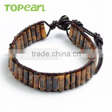 Topearl Jewelry Tiger Eye Leather Bracelet Woven Wrap Bangle 7.5 Inches CLL125
