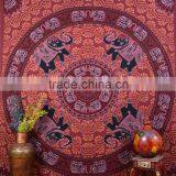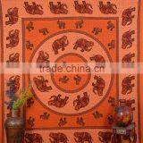 Indian Tapestry Cotton Orange Brown Mandala Elephants Vintage Wall Hanging Tapestries Throw Bedsheet