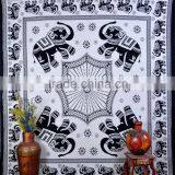 Indian Tapestry Cotton Black-White Mandala Elephants Vintage Wall Hanging Tapestries Throw Bedsheet