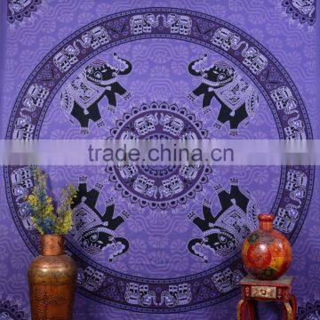 Indian Tapestry Cotton Purple Mandala Elephants Vintage Wall Hanging Art Tapestries Throw Bedsheet