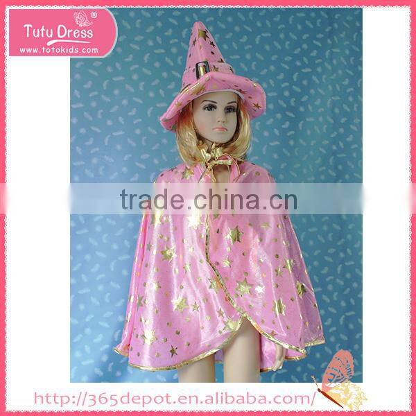 Pink witch costume with a high cap gauze dress halloween costume with gold stars pattern