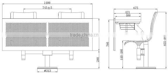 1. Seat and back: MDF board in thickness 15mm pressed surface covered with fireproof board, Edged by binding with PVC.