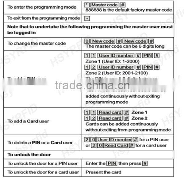 Card Type: 125KHz EM PIN length: 4~8 digits.