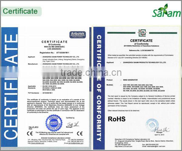 A: Multi-protection ensure sour HAWTs' speed regulation and protection during high winds: yawing + electromagnetic brake(by controller) + manual brake(available on HAWT 5KW and 10KW models).