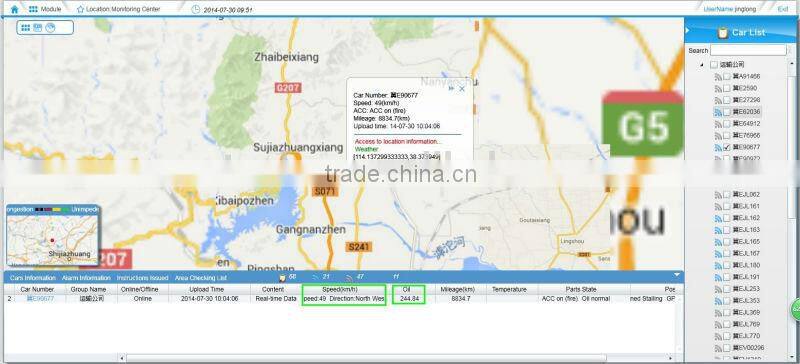 S1000 Vehicle gps tracking system software for oil level monitoring with alarm