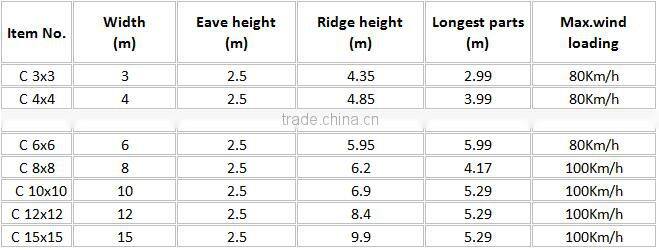 3x3m,4x4m,5x5m,6x6m,7x7m,8x8m,10x10m,12x12m,15x5m,or