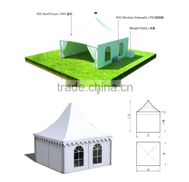 Pagoda tent: size from 3x3m to 15x15m.