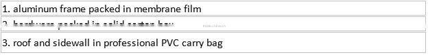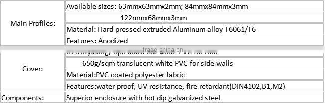 >> Fabric covering: high quality double PVC coated polyester fabric, 100% waterproof, fire retardant