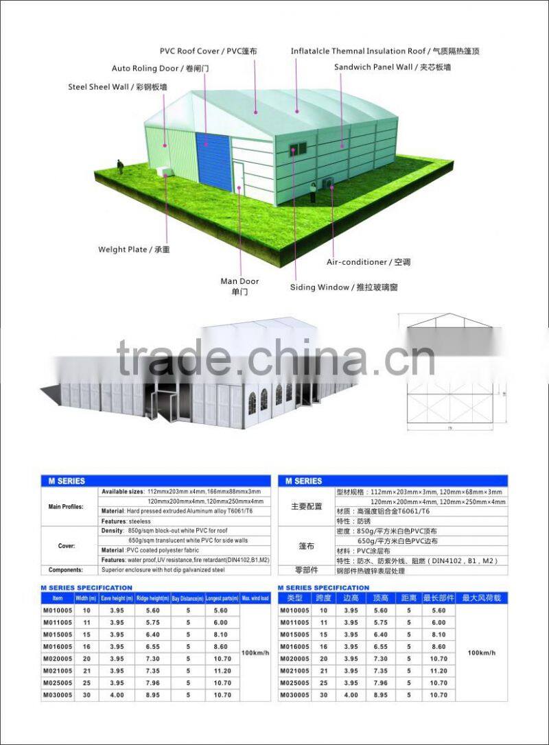Our tents can be assembled and dismantled and repeatedly with small transportation distance. The lifespan of aluminum framework can reach 15-20 years, and 5-8 years for PVC fabrics depending on different conditions of usage.