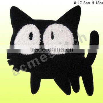 Towel Embroidery Patch Black Kitty Sew-on or Iron-on