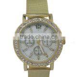 SNT-0027 Fashion Gold Alloy Watch With Crystal Stones and Reticulate Hand, High Quality Quartz Watch