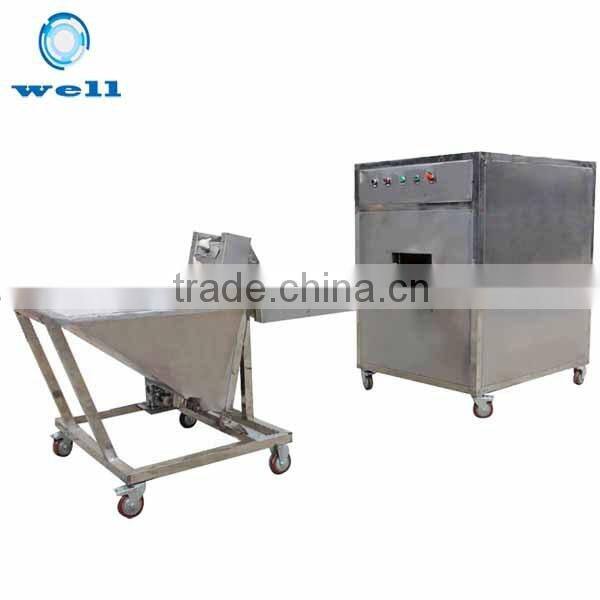 This machine is configurated with circular knife with high cutting speed. The blades will not produce fever and without any damage to the garlic. After cutting, the garlic root will be concave circular arc. The root will be moreved clearly and the efficiency is high.